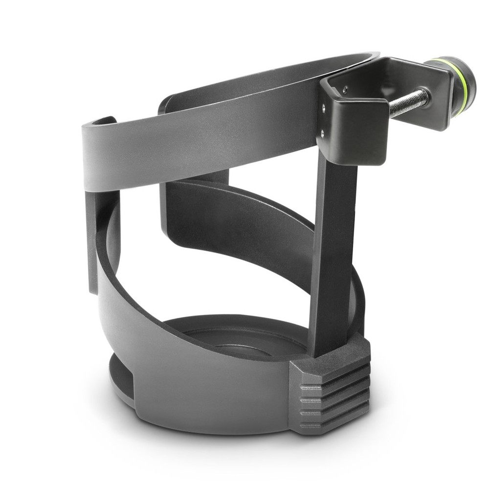 Ovaj držač za piće ima jedinstvenu kružnu stezaljku koja je podesiva za vertikalnu ili horizontalnu montažu. Podesiva je na stalke za mikrofone, stalke za zvučnike i muzičke štandove sa prečnikom cevi do 35 mm, kao i na stolove i bezbedno drži flaše, limenke, šolje i čaše maksimalnog prečnika 90 mm.