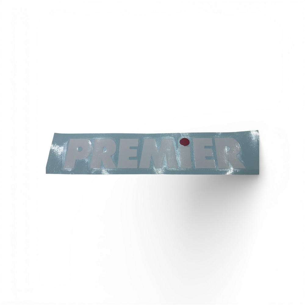 Premier nalepnica za bas bubanj sa belim slovima.